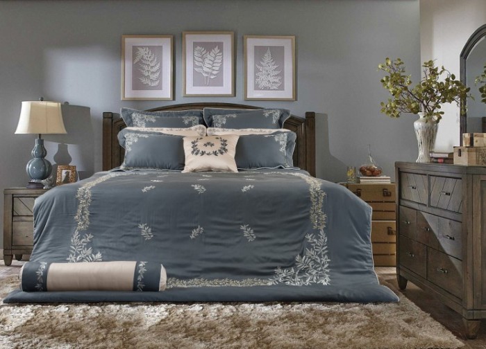Bộ chăn ga gối cao cấp Artemis ASM 19102 với gam màu xanh tím than, họa tiết thêu tinh tế, sắc nét, đem lại vẻ đẹp sang trọng, lịch lãm, quý phái.